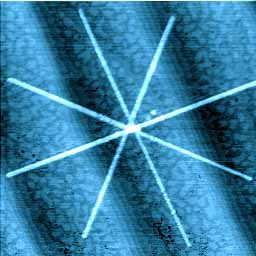 Bilayer-GaSe終端Si(111)表面に形成した星形AFM陽極酸化パターン。5000 nm×5000 nm。