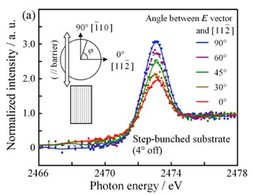 ステップバンチSi(111)基板上P3HT塗布膜の偏光NEXAFS分光法による配向性評価。