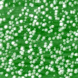 Bilayer-GaSe終端Si(111)表面に形成したZnO量子ドットのAFM像。500 nm×500 nm。