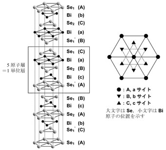 3次元トポロジカル絶縁体物質の探索の結果,Bi2Se3およびBi2Te3がトポロジカル絶縁体となり得ることが理論的に予言され49),実験的にも確認された50),51)。特にBi2Se3はk = 0のディラック点がバルクの最高被専有準位よりも上のギャップ内に存在するため,表面状態測定の実験に適している。Bi2Se3は図10に示すような,Se=Bi-Se-Bi=Seの5原子層からなる単位層がファンデルワールス力を介して積層した層状物質である49),50)。